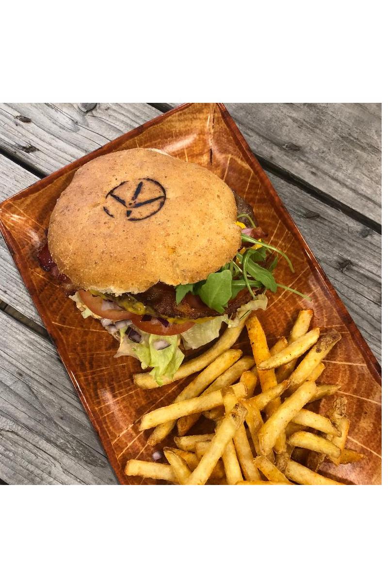 Hamburgerbrødet baker vi selv på LiVERTEN. Håndverksprodukt der bakeren elter og former hvert enkelt brød.