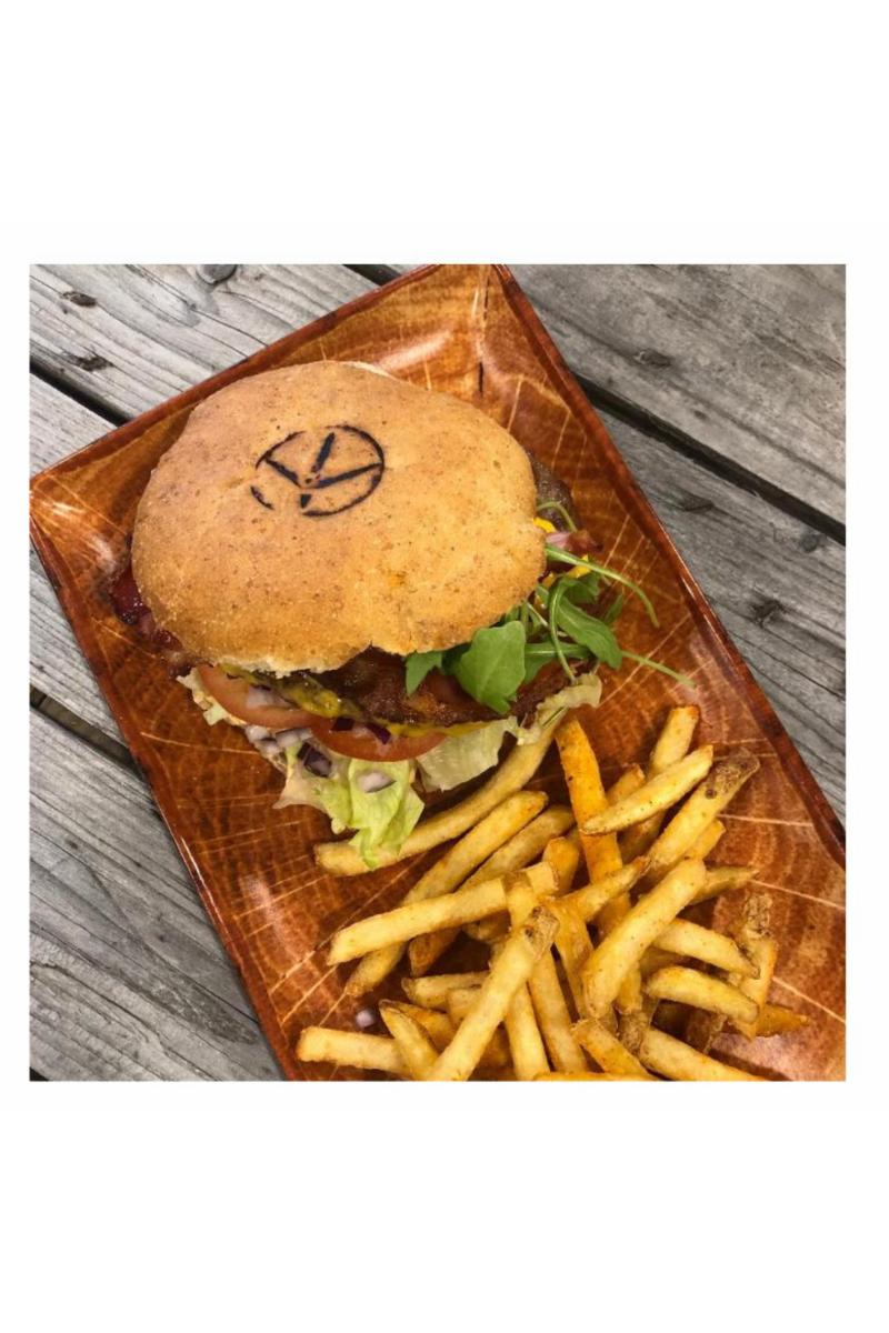 Hamburger av 100% storfe med hamburgerbrød, salat og dressing (Pris kun for barn/ungdom på vei til/fra aktivitet i regi av Lierne IL)